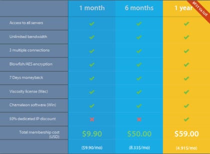 提供季度、6 个月和年度条款。Hostizzle 通过位于美国和欧洲的服务器提供个人 加速器 访问。